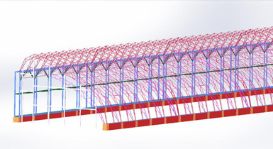 該溫室骨架為熱鍍鋅鋼材焊接,后墻為熱鍍鋅鋼材組裝,采用彩鋼板后墻保溫和相變蓄熱系統代替土墻和磚墻等蓄熱體,解決裝配式日光溫室的蓄放熱問題,實現日光溫室部件的工廠化生產和安裝的標準化裝配。
