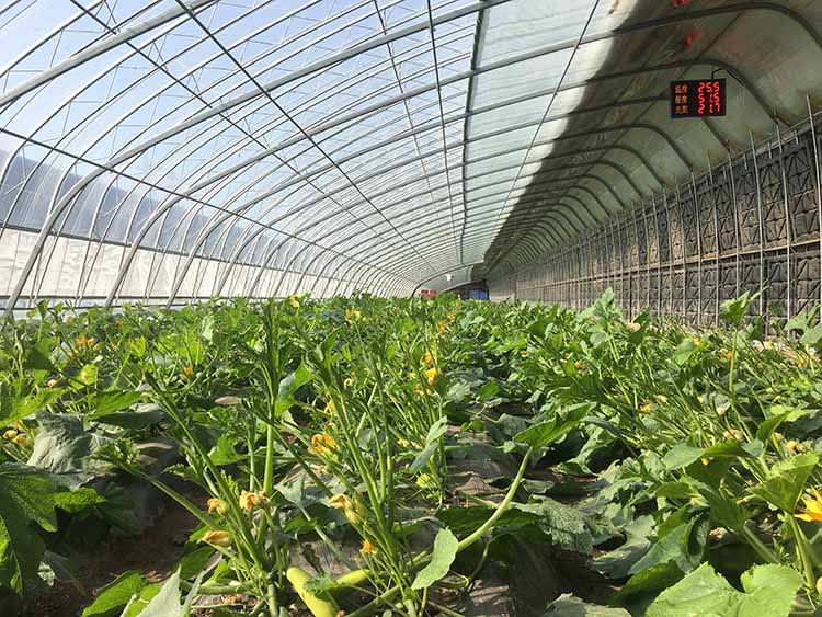1. 該溫室由全鋼骨架、蓄熱水箱、雙膜單被等裝配而成,結構輕便,采光角度科學合理,實現(xiàn)了通風和卷簾的自動控制。具有采光和保溫性能好、蓄放熱量大、承載力強等特點。