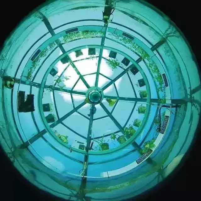 “采用正確的設計、保證溫室的結構能夠抵御風暴的來襲是大的挑戰。我們將有機玻璃與鋼架結合在一起做出了個‘生物圈’?!边@個半球體溫室直徑6英尺,高3英尺,并用28個可拆卸式的螺絲釘固定在海底。據Fontanesi表示,這種設計確保了溫室在風暴來襲時的穩定性,使其能夠承受相對范圍內的振蕩,并防止其被海浪撞擊得支離破碎。植物通過生物圈內壁凝結水滴使得內部保持水分,其晝夜恒溫26度,是植物生長的適宜環境。大量的二氧化碳也幫助其生長。